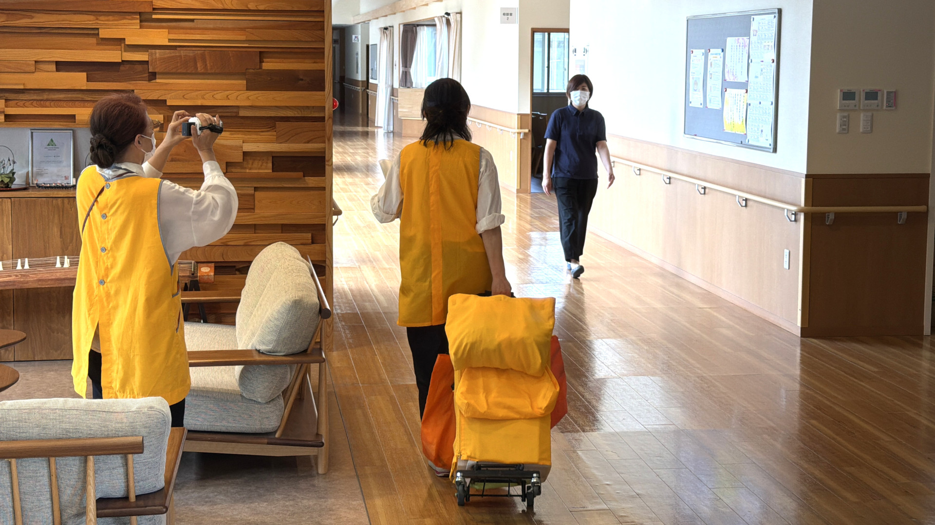 お部屋からホールまでの移動中も楽しそうに会話をされているご様子や、